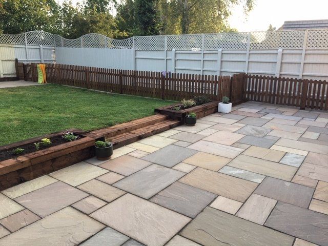 Something we do a lot of. Using sleepers to create low maintainence borders. A lot of customers add some pot plants.